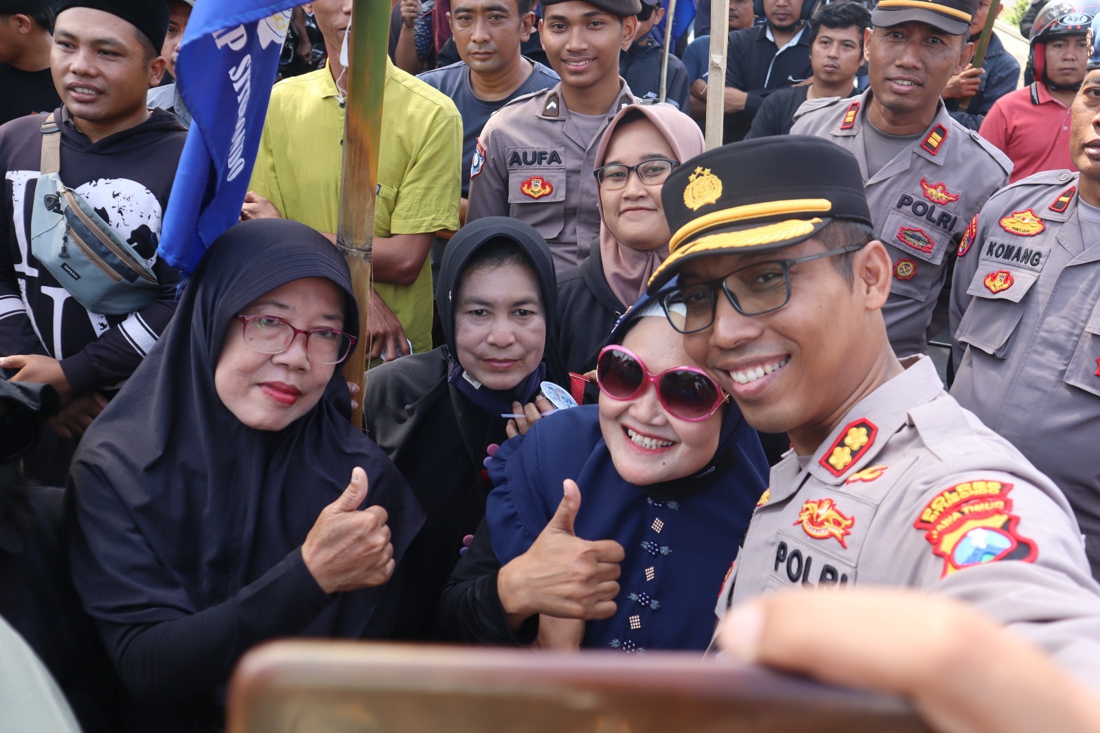 Berbagi Air Minum Saat Aksi Damai Buruh, Kapolres Situbondo Diserbu Emak-Emak Minta Selfie