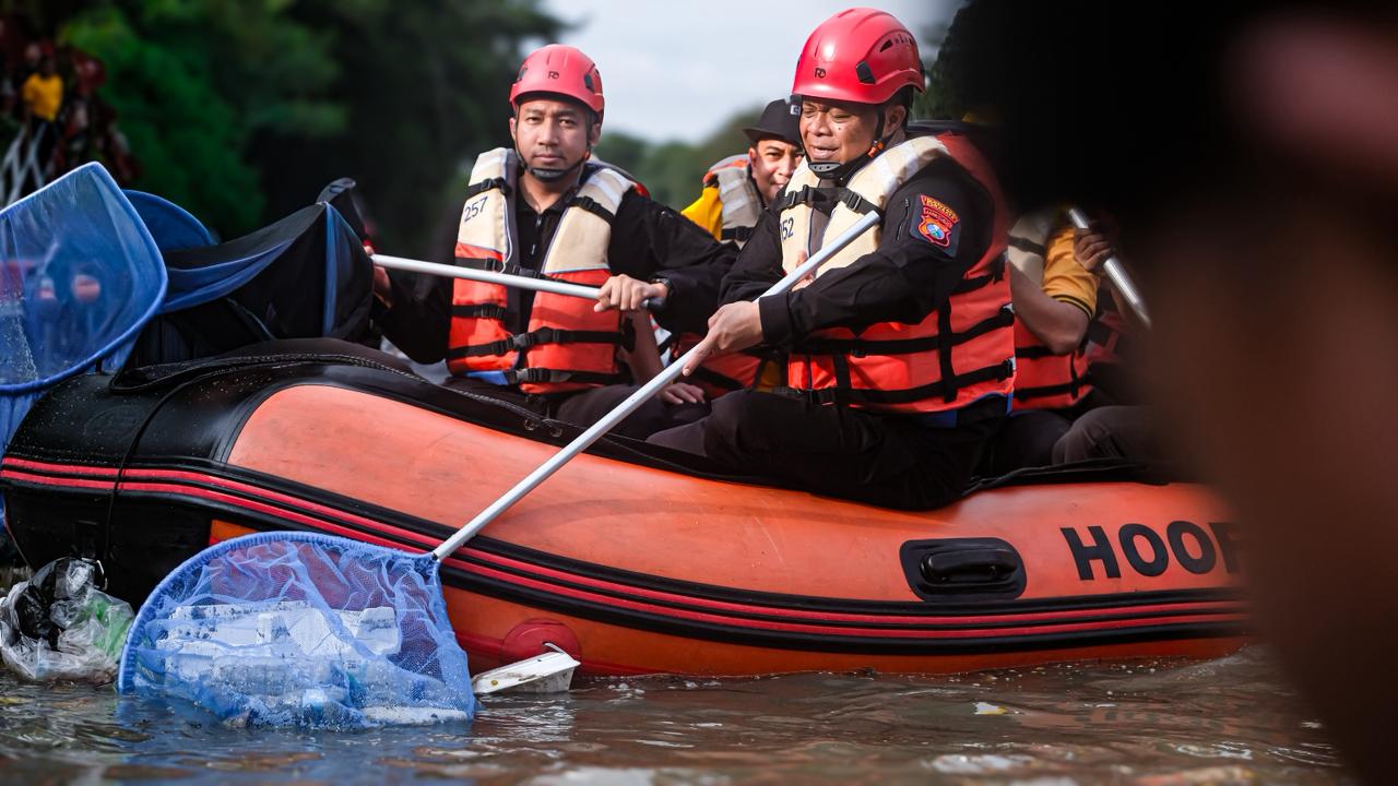 Kali ini melalui aksi nyata puluhan personel Polrestabes Surabaya bersama pemerintah Kota Surabaya melakukan pembersihan aliran kali di kawasan Jembatan Merah, Jumat (20/2/26).