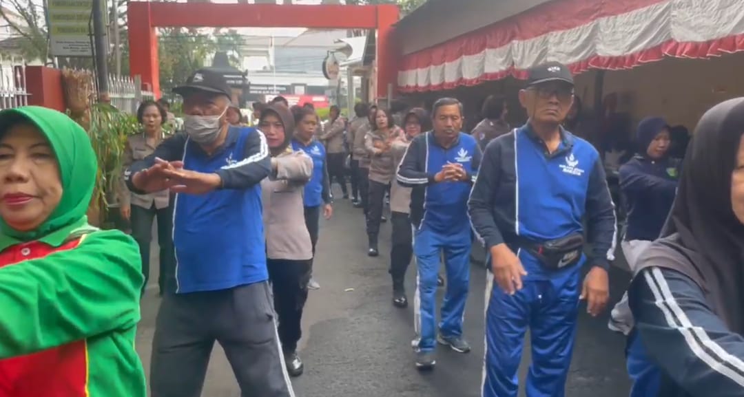 Tak hanya bhakti kesehatan, peserta lansia juga diajak senam pagi bersama para Polwan yang turut hadir mengikuti kegiatan.