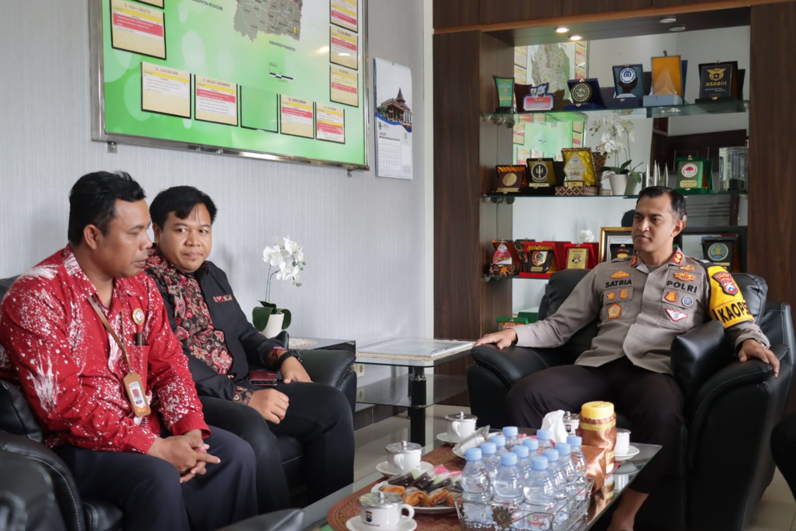 Kunjungan Komisioner Bawaslu diterima oleh Kapolres Magetan, AKBP Satria Permana di ruang kerjanya.