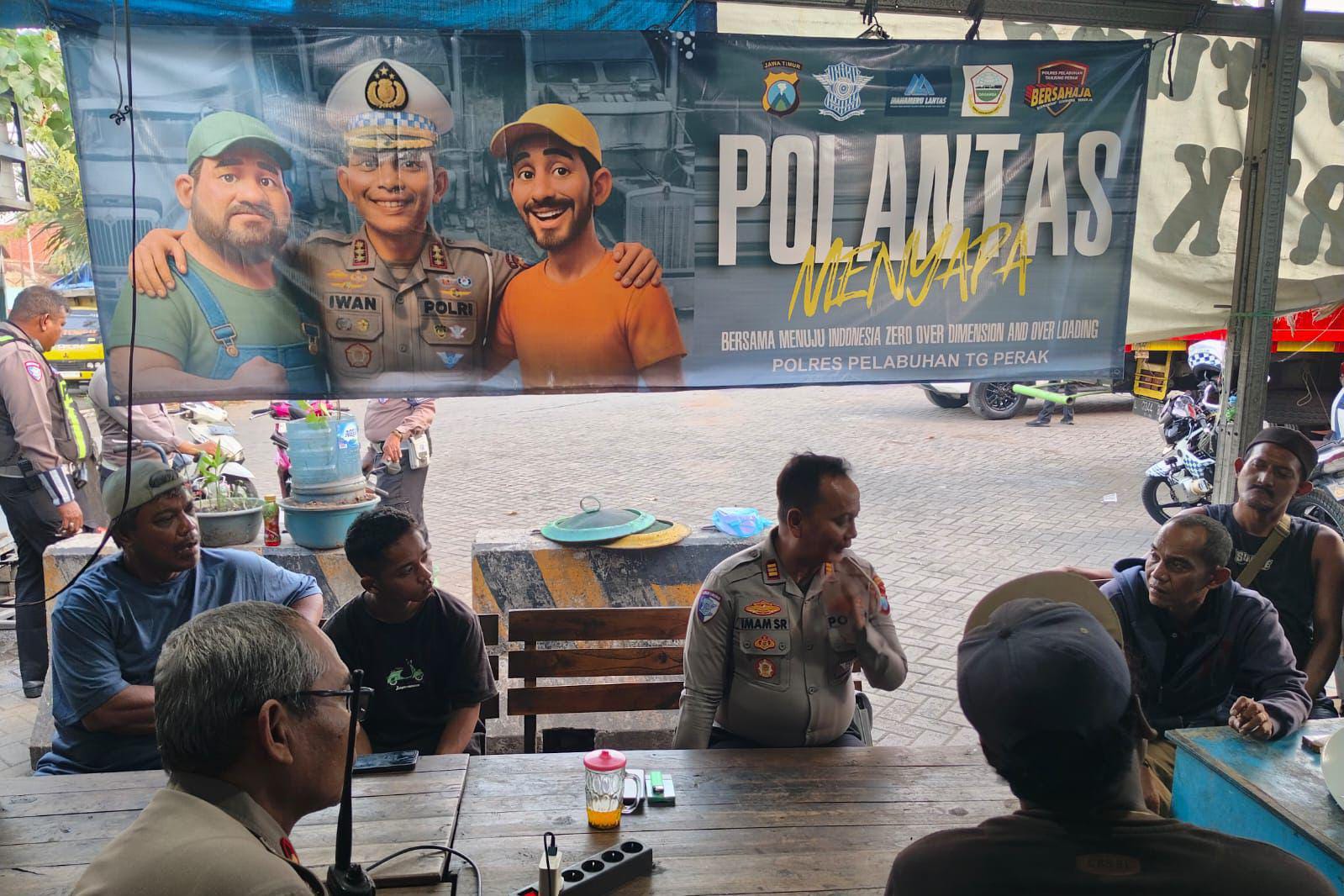 Kegiatan bertajuk Polantas Menyapa Bersama Menuju Indonesia Zero Over Dimensi dan Over Loading (ODOL) ini dipimpin langsung oleh Kasat Lantas Polres Pelabuhan Tanjung Perak, AKP Imam Sayfudin Rodji.