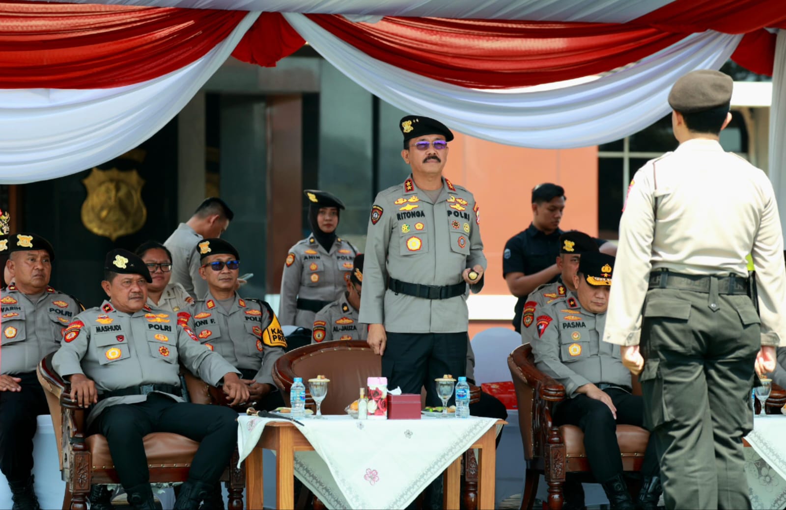 Kegiatan apel gelar pasukan ini juga dihadiri Kapolda Jawa Timur Irjen Pol Imam Sugianto, didampingi Waka Polda Jatim serta pejabat utama (PJU) Polda Jatim.