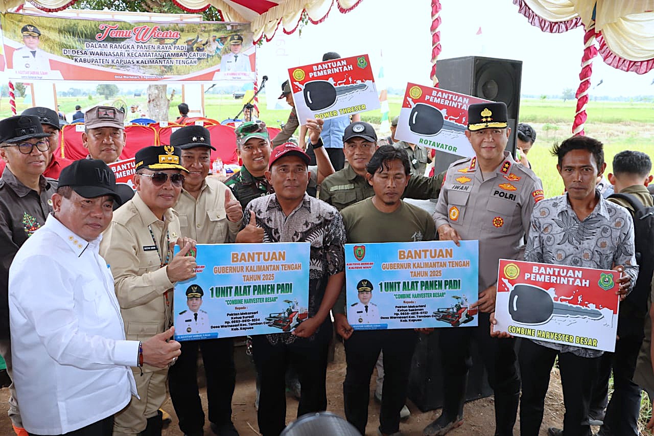 PALANGKA RAYA – Irjen Pol Iwan Kurniawan, bersama Gubernur H. Agustiar Sabran dan jajaran Forkopimda Kalteng, menghadiri kegiatan panen raya padi di Desa Warnasari, Kecamatan Tamban Catur, Kabupaten Kapuas, Sabtu (9/8/2025).