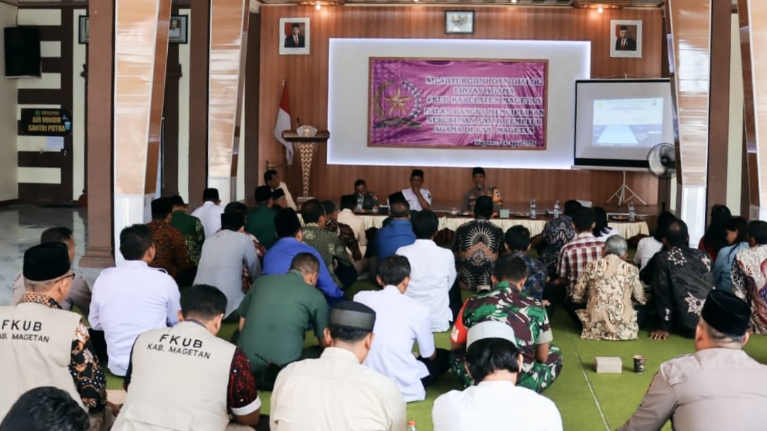 Hal itu diwujudkan dengan menghadiri acara silaturahmi dan dialog lintas agama yang diselenggarakan FKUB (Forum Kerukunan Umat Beragama) Magetan di Ponpes Al-Ikhlas Karasan, Kartoharjo, Rabu (24/4/2024)