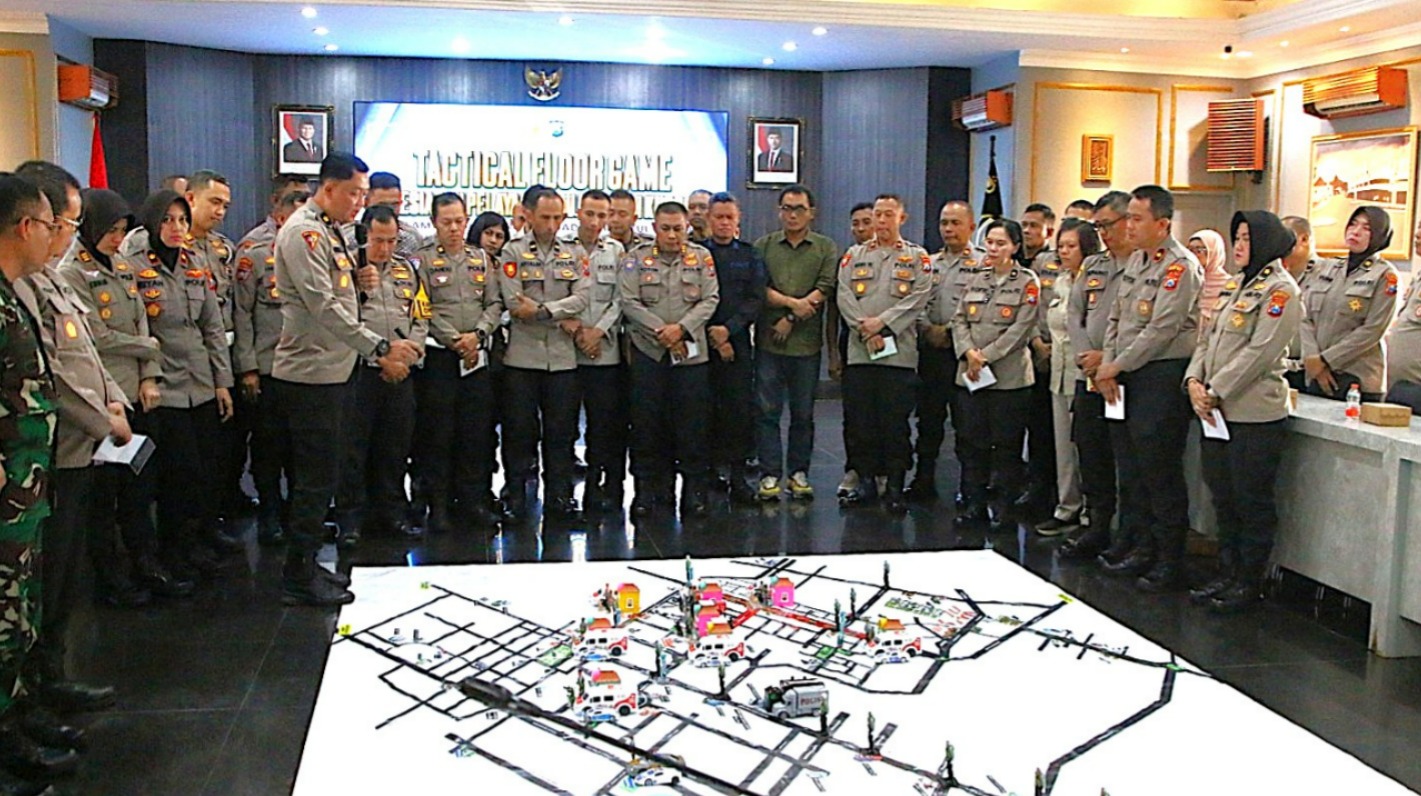 Pada H-1 kegiatan Mujahadah Kubro 1 Abad NU, Kapolresta Malang Kota, Kombes Pol Putu Kholis Aryana didampingi Kabag Ops Kompol Wiwin Rusli memimpin Tactical Floor Game (TFG) di Ballroom Sanika Satyawada, Jumat (06/02/2026).