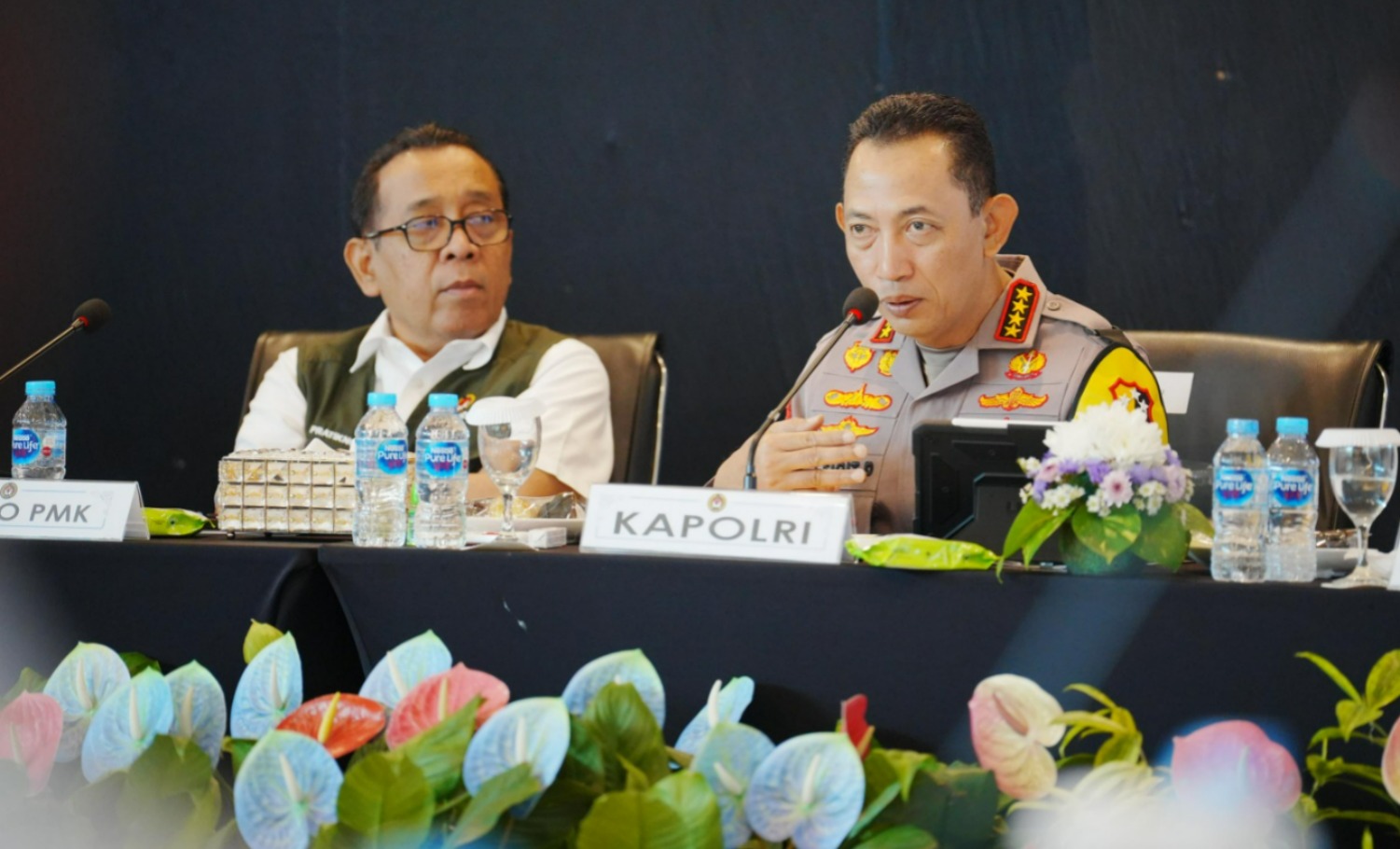 Dalam kunjungan ini, Kapolri bersama dengan Menko PMK Pratikno, Menteri PU Dody Hanggodo, Menkes Budi Gunadi Sadikin, serta perwakilan Basarnas, TNI, Kemenko Polkam, BNPB, dan pejabat Mabes Polri.