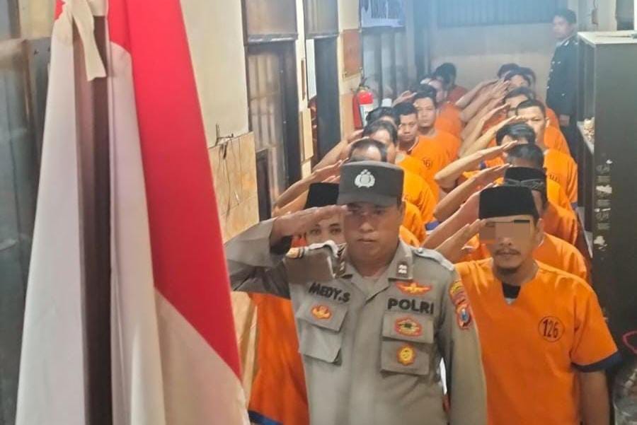 Momentum Hari Kemerdekaan RI ke-79 Tahanan Polresta Banyuwangi Peringati Detik- Detik Proklamasi dengan Khidmat