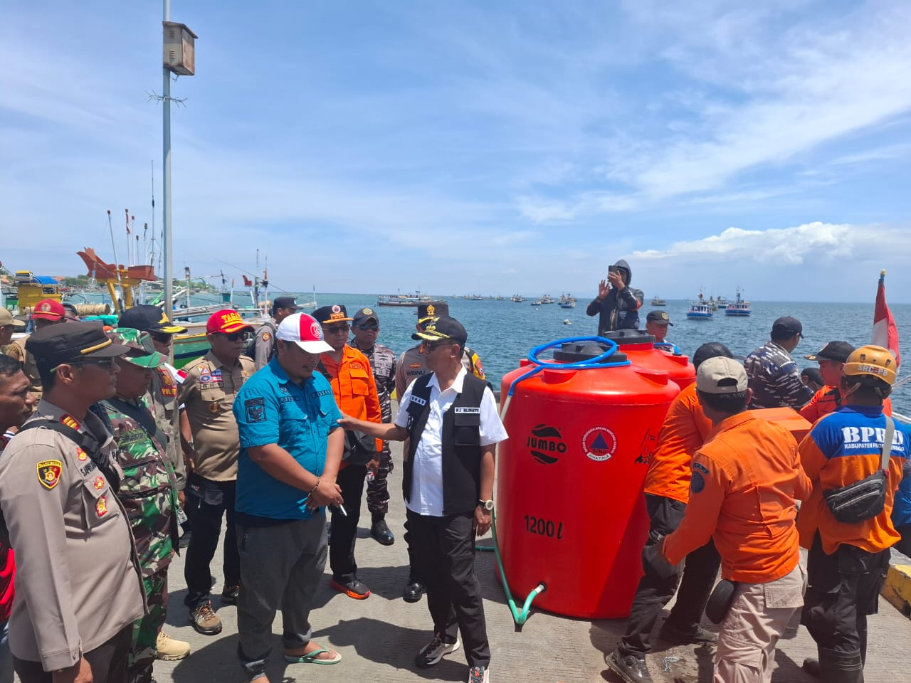 Tak hanya itu, ratusan dos air mineral juga digelontorkan untuk warga yang tinggal di Pulau Gili Ketapang yang hampir sebulan mengalami krisis air bersih akibat pipa air dalam laut yang pecah.