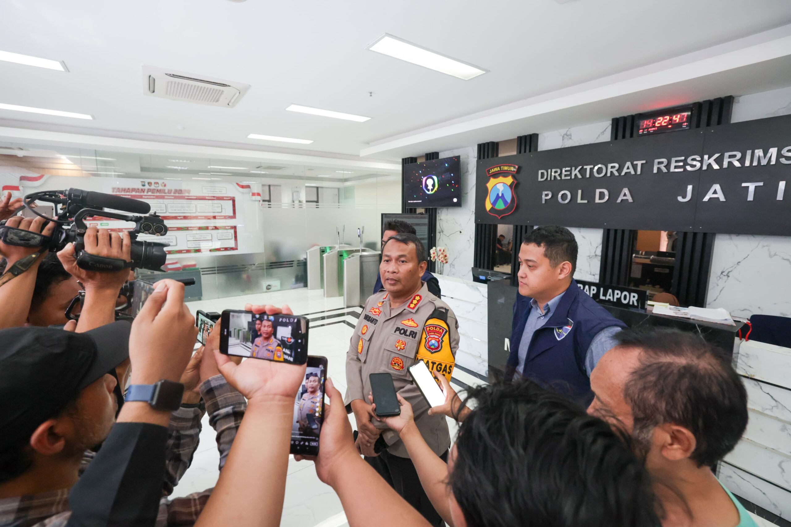 “Jadi begini, saudara Samsudin dikhawatirkan melarikan diri dan menghambat penyidikan, maka dilakukan upaya penjemputan oleh penyidik Ditreskrimsus Polda Jatim,” ujar Kombes Dirmanto di Lobby Utama Gedung Ditreskrimsus Polda Jatim.