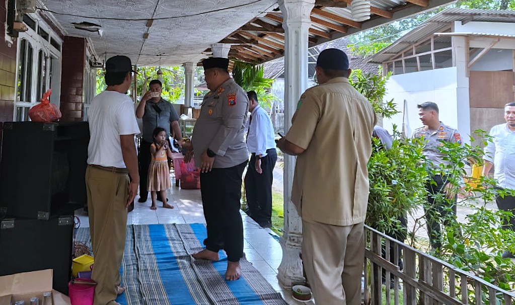 Kapolres Pasuruan bersama rombongan yang tiba di rumah duka di Dusun Areng-areng Selatan, Desa Sambisirah menyerahkan santunan terhadap keluarga korban.