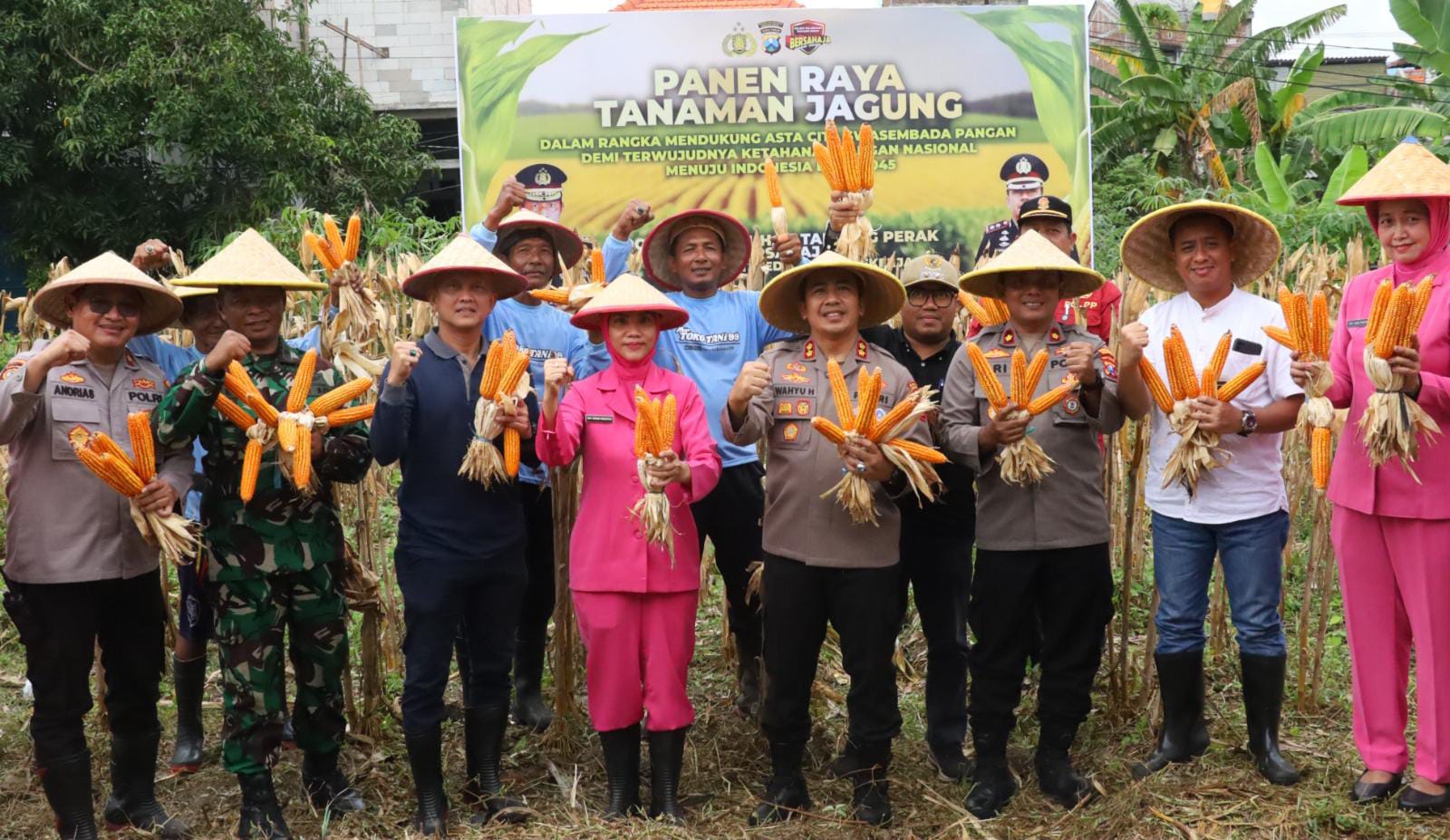 “Alhamdulillah, kita dapat berkumpul untuk melaksanakan panen raya jagung, yang menjadi bagian dari upaya kita mendukung program swasembada pangan demi terwujudnya ketahanan pangan nasional, khususnya dalam rangka menuju Indonesia Emas 2045,”ujar AKBP Wahyu Hidayat.