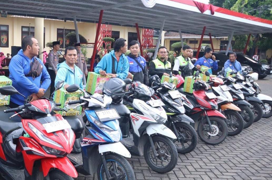 Polres Situbondo dan Bhayangkari Berbagi Ratusan Bingkisan Ramadhan untuk Driver Ojol