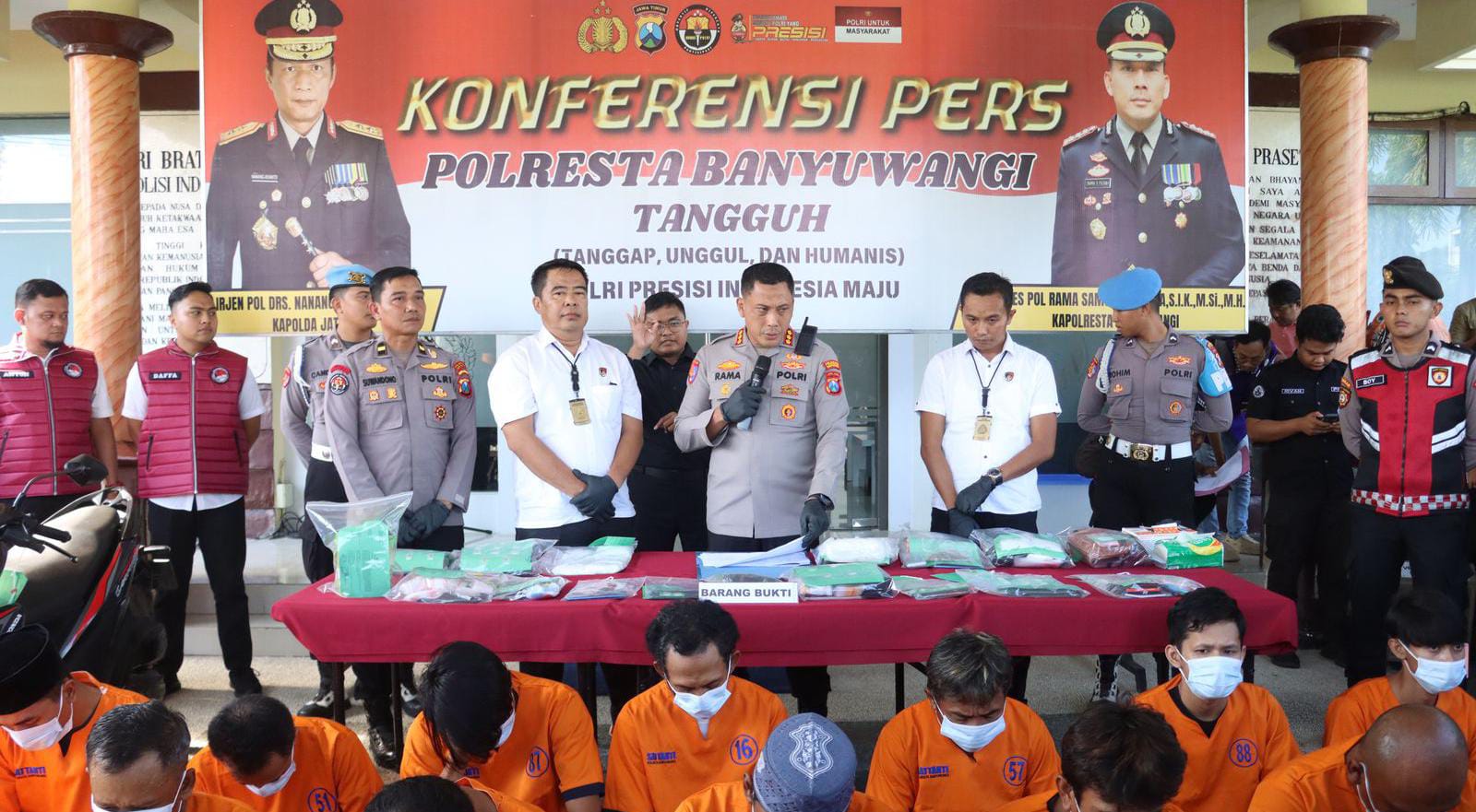 Kapolresta Banyuwangi mengungkapkan total barang bukti yang diamankan mencakup: