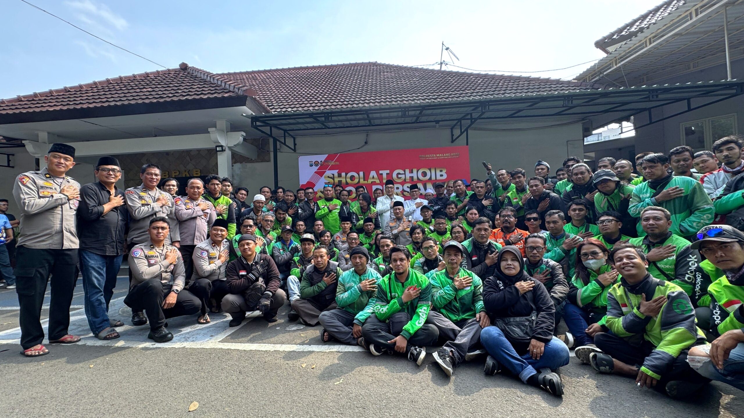 Para jamaah dari mulai Kapolresta Malang Kota Kombespol Nanang Haryono SH, SIK, MSi, ulama, komunitas ojek online, hingga masyarakat umum, berkumpul melaksanakan Sholat Ghoib dan doa bersama untuk almarhum Affan Kurniawan (21), driver ojol yang menjadi korban tragedi di Jakarta pada 28 Agustus lalu.