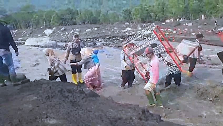 LUMAJANG — Polri bergerak cepat di garis terdepan untuk menyelamatkan warga terdampak banjir lahar dingin di Kecamatan Candipuro, Kabupaten Lumajang. Sejak pagi, personel Polres Lumajang bersama BPBD, TNI, perangkat desa, dan relawan terus melakukan evakuasi warga serta mengamankan harta benda masyarakat di sepanjang DAS Besuk Kobokan hingga Besuk Regoyo.