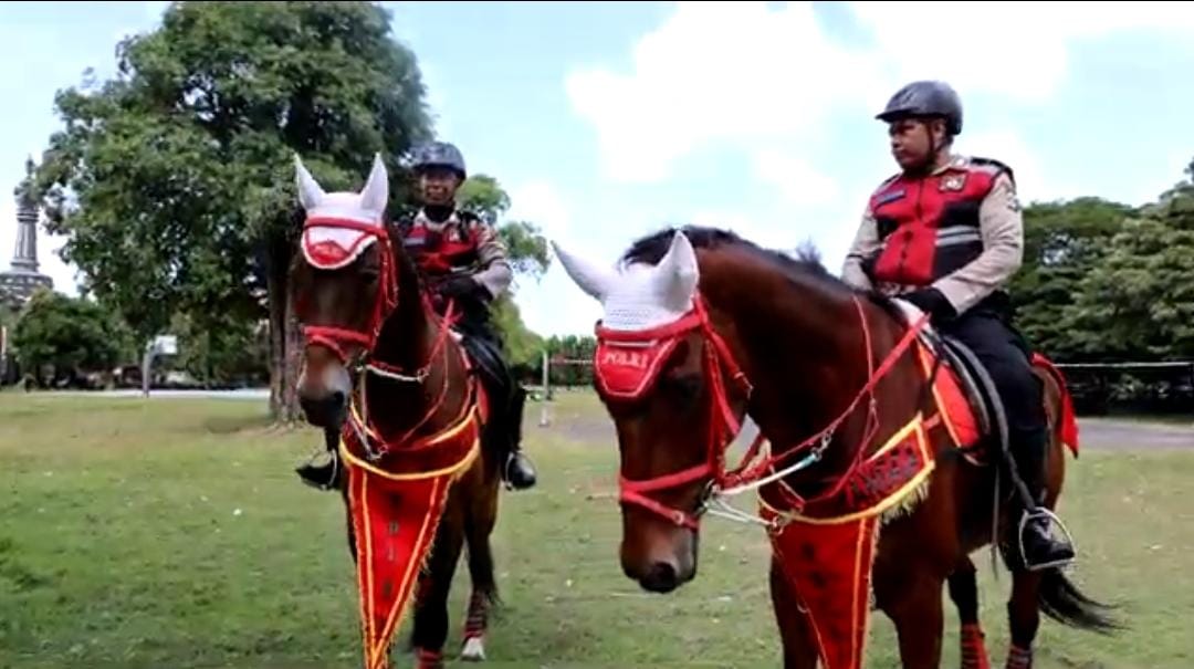 “Detasemen Turangga atau pasukan berkuda ini untuk melaksanakan kegiatan yang sifatnya atau medannya yang tidak bisa dilalui kendaraan. Oleh karena itu bisa menggunakan Turangga ini namun pada pelaksanaan event ini melaksanakan patroli yang sifatnya jaraknya sedang,” katanya.