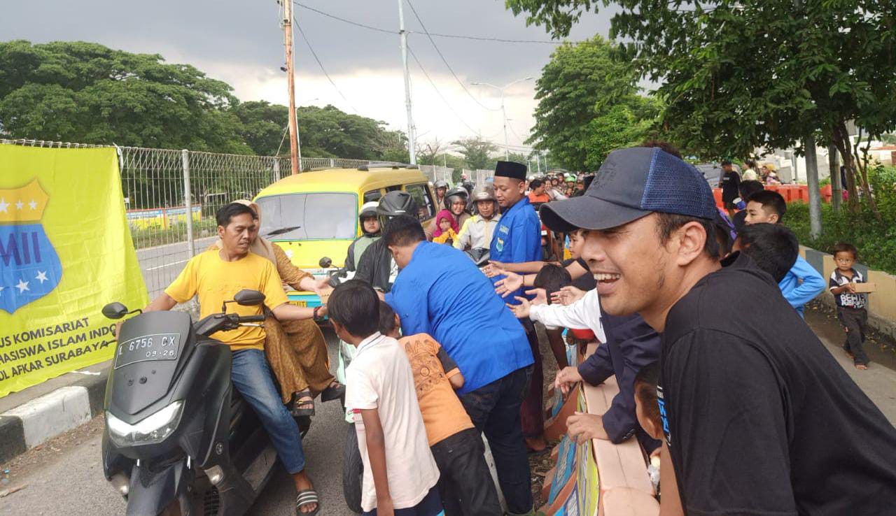 Ramadhan Berkah, Polres Pelabuhan Tanjungperak Gandeng PMII Berbagi Takjil di Suramadu