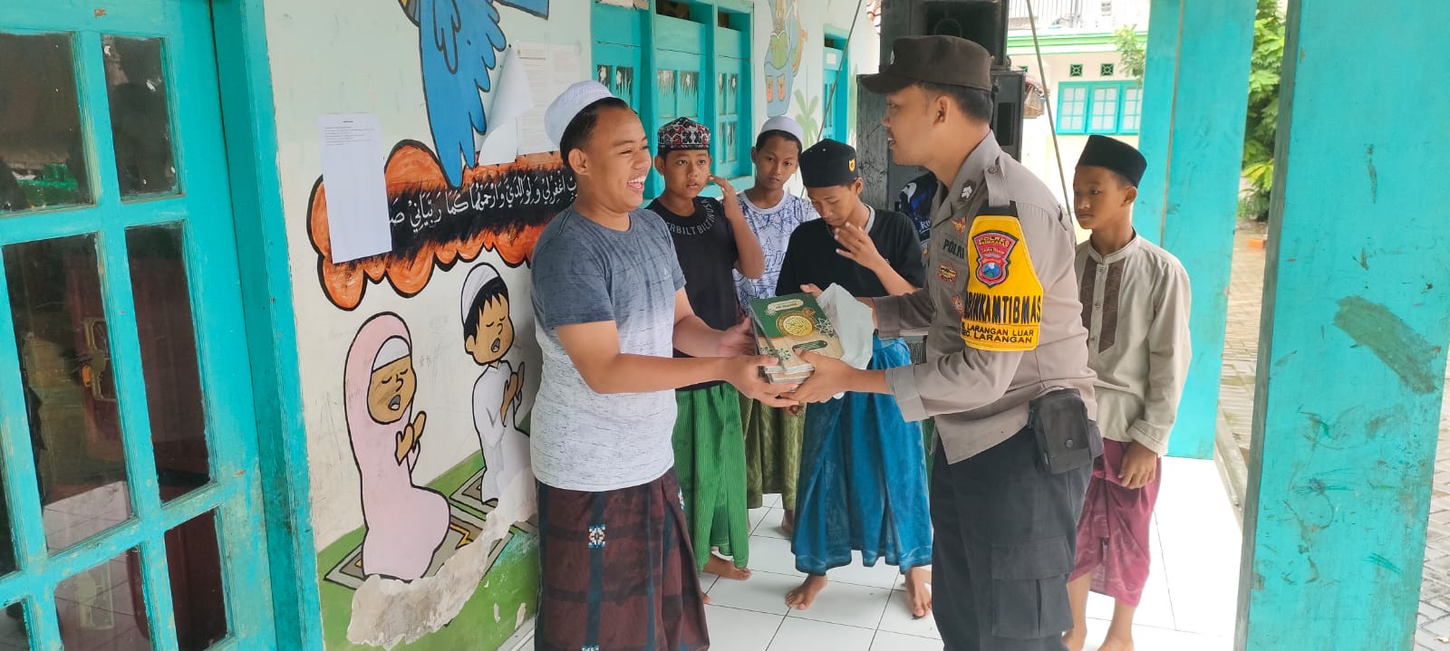 Pemberikan bantuan Al-Qur’an dilakukan secara door to door oleh Bhabinkamtibmas Polsek Larangan ke berbagai Pondok Pesantren, Masjid dan Musholla.