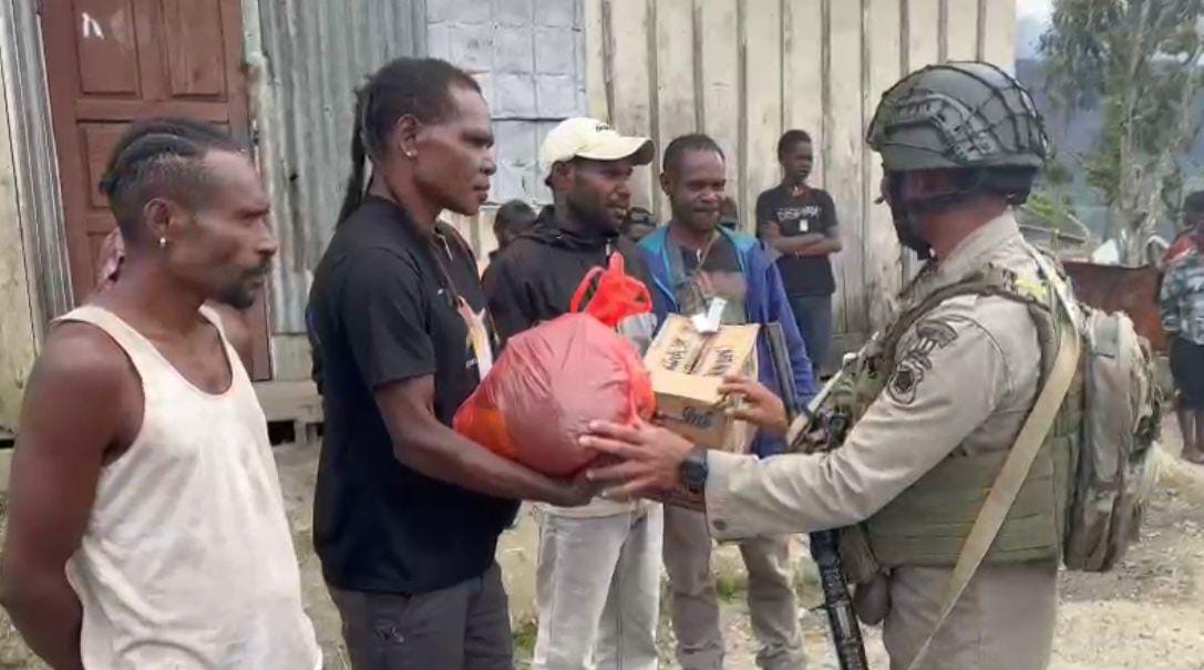 Sementara itu, di wilayah Sektor Intan Jaya, kegiatan sosial juga dilaksanakan oleh personel Satgas yang dipimpin Bripka Sudomo dengan memberikan bantuan bahan makanan (bama) kepada masyarakat yang sedang mengalami duka. Kegiatan ini merupakan wujud empati dan solidaritas aparat terhadap masyarakat yang sedang berduka, sekaligus bentuk kehadiran negara di tengah situasi sosial yang rentan.