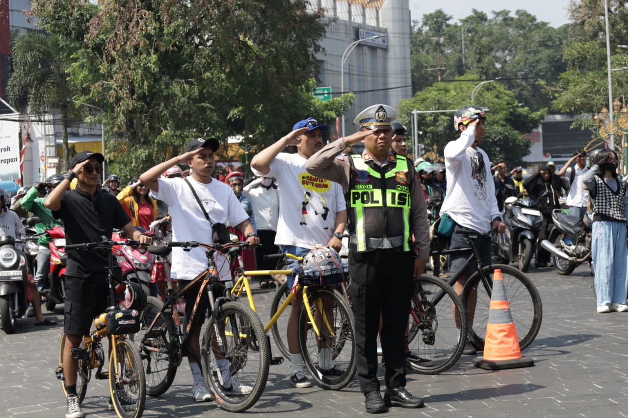 Satlantas Polresta Ajak Warga Kota Malang Berhenti Sejenak Berikan Penghormatan Bendera di Persimpangan