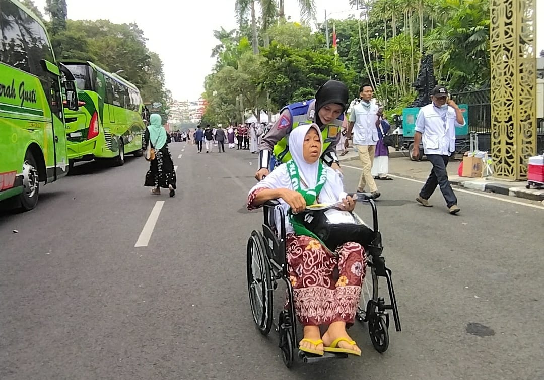 “Alhamdulillah kami tadi dibantu oleh teman Polwan saat dorong kursi salah satu regu kami yang kebetulan sakit. Semoga amal baik para petugas ini dibalas dengan pahala oleh Allah,” ucap Slamet.