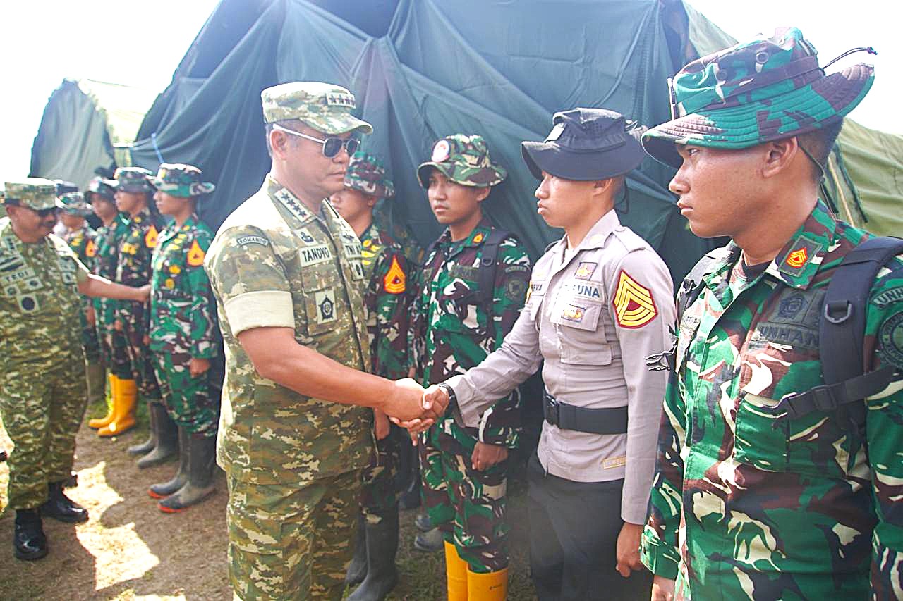 Wakil Panglima TNI bersama Gubernur Akademi Kepolisian (Akpol), para Gubernur Akademi Angkatan, serta Pejabat Utama (PJU) Akpol turun langsung meninjau lokasi sasaran fisik pembersihan sisa banjir yang dikerjakan oleh para Taruna.