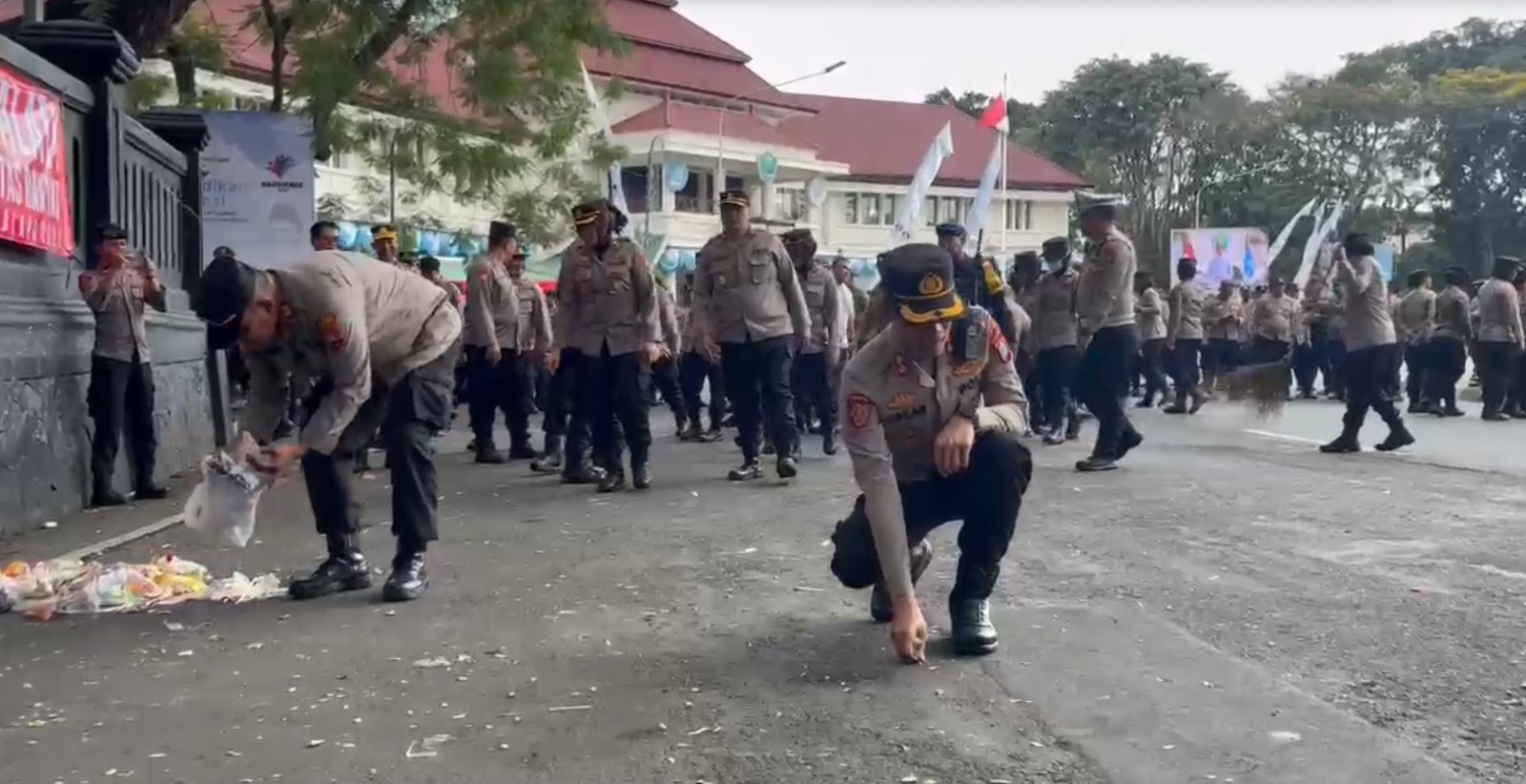 “Sebagai aparat tidak hanya untuk mengamankan, tetapi juga merawat. Terutama kebersihan pasca aksi adalah tanggung jawab bersama,” ujar Kombes Nanang.