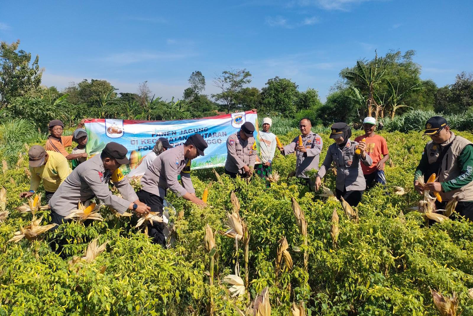 Wujudkan Program Ketahanan Pangan Polres Probolinggo Bersama Kelompok Tani Panen Jagung di Bantaran